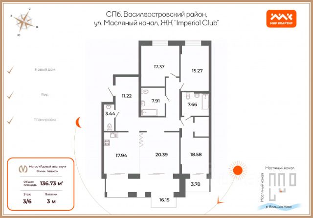 Арт. 126483543 В продаже видовая евро4 квартира в топовом проекте от Сетла - Imperial Club. Это элитный жилой комплекс в сердце Петербурга, на Васильевском острове. Эксклюзивные виды на Большую Неву и исторический центр города, лучшие архитектурные и технические решения, приватная территория с авторской концепцией благоустройства и уникальные планировки. Отличное расположение и транспортная доступность - на первой линии Невы в продолжении набережной Лейтенанта Шмидта, рядом с ледоколом "Красин". Imperial Club находится в центре активной жизни. Рядом Горный университет и другие образцы классической архитектуры, модные общественные и культурные пространства, современные транспортные развязки удобный выезд как в центр города, так и на КАД и ЗСД. Квартира расположена на 3 этаже, всего 6. Потрясающие виды из всех окон! Современная функциональная планировка - 3 спальни, большая кухня гостиная, 3 просторных санузла и места хранения! Что же еще нужно для комфортного проживания в центре города в премиальном комплексе. Сдача дома уже через год! Быстрая комфортная сделка! Предлагаем ПРЕМИАЛЬНОЕ обслуживание для требовательных клиентов. Оперативно организуем просмотр, предоставим полную информацию по объекту. 20 лет работы с требовательными клиентами подготовили нас к решению ВАШИХ сложных задач. Будем рады знакомству! Ул. Рубинштейна, д.8. Продается 3-комнатная квартира первичка на канале Масляный в Санкт-Петербурге.