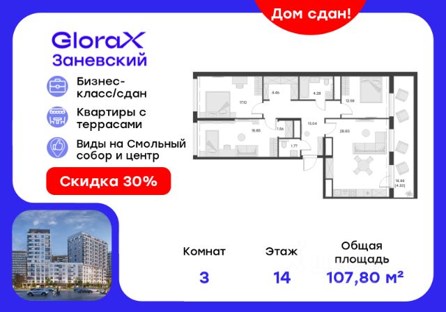 Продается 3-комн. квартира на 2-м этаже в проекте бизнес-класса GloraX Заневский. Общая площадь лота составляет 94,31 кв. м, из которых 40,43 кв. м отведено под жилую и 15,99 кв. м под кухонную зону. Номер квартиры - 1. Дом сдан. Ключи сразу! Преимущества квартиры: кухня-гостиная; гардеробная; 2 санузла. - Отделка White box - Увеличенные окна - Квартиры с террасами - Система "Умный дом" - IP-видеонаблюдение, Free Wi-fi на территории - Отапливаемый паркинг - Детская разновозрастная площадка - Комьюнити-центр для жильцов GloraX Заневский - современный комплекс бизнес-класса в шаговой в 2-х минутах от метро "Ладожская", для тех, кто не готов идти на компромиссы в вопросах комфорта и качества жизни. Мультифункциональный проект на 494 квартиры для стильных активных людей живущих в ритме большого города. GloraX Заневский располагается в экологически благоприятной локации. В пешей доступности находятся сад и 4 парка: парки Малиновка, Малоохтинский, Ладожский, Заневский и Яблоновский сад. У жителей мегаполиса есть уникальная возможность отвлечься от городской суеты и повседневных забот. 63 типа планировок от классических до евро-форматов, квартиры с террасами и уникальные квартиры с видом на динамичный Заневский проспект. Переменная этажность позволяет солнцу в равной степени освещать все квартиры, а увеличенная площадь остекления получить максимум дневного света. В проекте будет реализована собственная развитая инфраструктура: магазины и рестораны, детские площадки, фитнес-клуб, комьюнити-центр, уютные закрытый двор и прогулочный бульвар. GloraX Заневский не оставит равнодушными и любителей шоппинга, ведь всего в нескольких минутах пешей прогулки находятся крупные торговые галереи, кинотеатры, кафе и рестораны, среди которых ТЦ "Платформа", "Перрон", "Ладожские ряды", "Заневский каскад", "Нео", "Польза" и "Мебель Холл". GloraX Заневский это проект, использующий современные и технологичные решения, создающие комфорт и безопасность в повседневной жизни резидентов комплекса. Инновационная система "Умный дом" в жилом комплексе и в квартире обеспечивает согласованную работу всех инженерных систем и позволяют настраивать и опционально подключать необходимый дополнительный функционал. Для владельцев автомобилей мы спроектировали подземный отапливаемый паркинг на 295 машиномест, куда можно спуститься на лифте прямо со своего этажа. Цена указана при 100% оплате или стандартной ипотеке. Узнайте подробности в Отделе продаж. Продам 3-комнатную квартиру первичка на проспекте Энергетиков в Санкт-Петербурге.