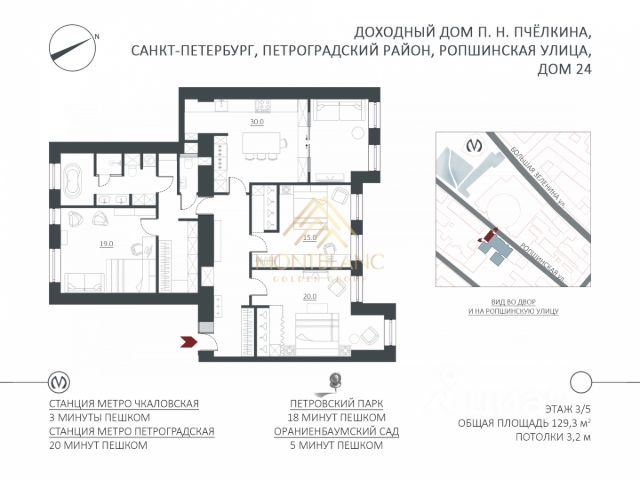 Видовая резиденция площадью 211,6 кв.м. расположена на третьем этаже комплекса "Императорский яхтъ-клуб" Свободное планировочное решение предусматривает расположение трех мастер-спален. Виды из двух спален направлены на двор-курдонер и Среднюю Невку, из третьей спальни, открывается вид на закрытую территорию комплекса. В гостиной площадью 31 кв.м и в кухне 19 кв.м расположены выходы на террасу. Высота потолков 3,25 м. Комплекс "Императорский яхтъ-клуб" включает в себя три корпуса. Каждый корпус построен из немецкого кирпича ручной формовки, террасы и лестницы выполнены из натурального гранита, мрамора и авторской ручной ковки. В первом корпусе располагается wellness-центр, с плавательным бассейном 20 м., SPA, тренажерным залом, залом для йоги и фитнес-баром. Сервис комплекса работает по системе закрытого клуба-только для резидентов и соответствует уровню пятизвездочного отеля. На благоустроенной территории комплекса расположена гранитная набережная 600 м, прогулочные дорожки, яхтенная марина, вертолетная площадка, ресторан высокой кухни. На территории организованы два пункта охраны и ведется круглосуточное наблюдение, консьерж-служба.