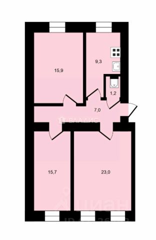 Можно объединить кухню и гостиную в просторный холл. Кладовку можно превратить в гардеробную или второй санузел.
