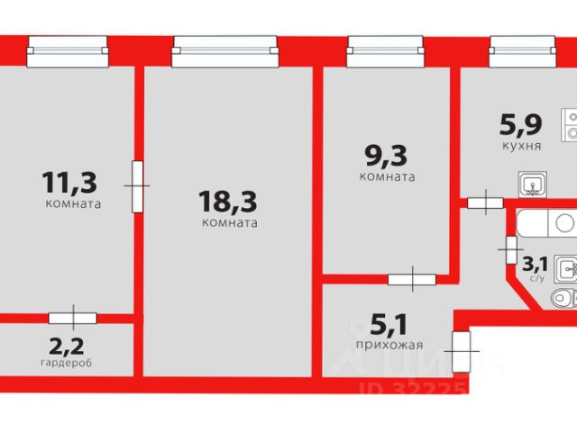 3 комнатная квартира , 10 минут пешком от м. Московская