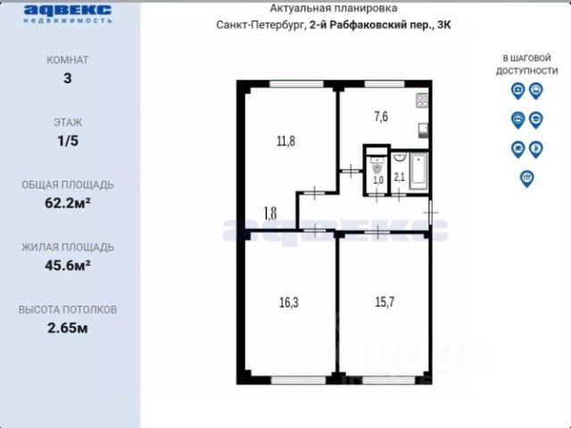 В районе много зеленых насаждений, рядом парк Куракина дача. Дом малонаселенный, всегда есть свободные парковочные места для жителей. Инфраструктура района отлично развита: поблизости много школ, детских садов, поликлиники и магазины, культурно-досуговые и спортивные заведения, которые обеспечат комфортное проживание для всей семьи. Хорошо развит общественный транспорт, быстрый выезд на КАД. До станции метро Пролетарская пешком 16 минут, до исторического центра города со всеми достопримечательностями 10 мин. в метро!