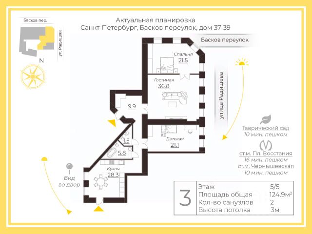 В шаговой доступности находятся главные достопримечательности: Летний сад, Русский музей, храм Спас на Крови, Михайловский замок, Мариинский театр.