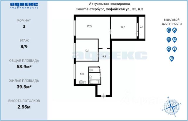 Предлагаем приобрести светлую, уютную квартиру с удобной планировкой в Калининском районе города. Экологически чистый район, развитая социальная инфраструктура: школа, два детсада, поликлиника, сетевые магазины, аптеки все в пешей доступности. Рядом расположены остановки общественного транспорта откуда можно уехать в любой район города. До ст. метро Академическая 10-15 мин транспортом. Рядом находится Муринский парк, где можно гулять и любоваться природными красотами. Близость основных магистралей и КАД обеспечит Вас удобным выездом из города.. Дом имеет большой зеленый двор, современную детскую площадку. чистые парадные, домофон.