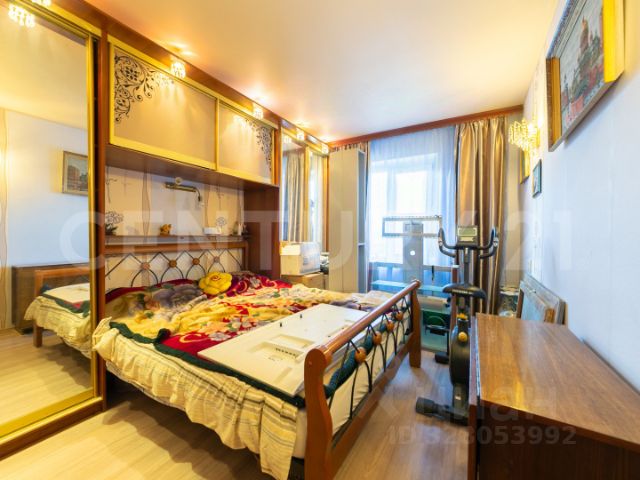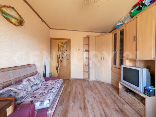 Рядом со спальней расположилась вторая изолированная комната площадью 15,3 квадратных метра. Вся мебель: двуспальный диван, стильным книжным шкафом, рабочим столом, вместительным комодом и телевизором - остаются новым владельцам. Через окно открывается доступ на застеклённую лоджию -3,6м2. Внутри также имеется отдельная кладовая, преобразованная в удобную гардеробную площадью 2,1 квадратных метра.