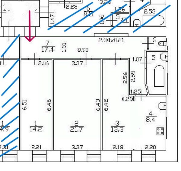 Квартира больше подходит для инвестиций, т.к имеет одну входную группу с последней в доме коммунальной квартирой (соседи очень тихие).