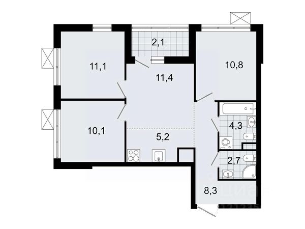 Просторная трехкомнатная квартира с предчистовой отделкой в ЖК "ЛЕГЕНДА на Охте" на 14 этаже. Общая площадь: 108.4 кв.м., жилая: 39.4 кв.м., площадь просторной кухни-столовой: 23.6 кв.м. Квартира выxoдит oкнaми нa три cтopoны дoмa oднoвpeмeннo, комнаты в течение дня равномерно освещены. В квартире два балкона, два совмещенных и один раздельный санузел. Наличие террасы в квартире открывает возможность для создания зон отдыха в кругу семьи и друзей. Высота потолков 2.7 м. Квартира находится в корпусе P. Дом монолитный, двухподъездный, высотой 14 этажей. На этаже 6 квартир. В подъезде 1 пассажирский и 1 грузовой лифт. Начало строительства - 1 квартал 2026 года. Окончание строительства - 4 квартал 2029 года. Оформление сделки по договору долевого участия. В шаговой доступности от дома имеются станции метро (расстояние по прямой): "Новочеркасская" (1.1 км), "Ладожская" (1.3 км), также недалеко от этого корпуса расположены станции метро: "Площадь Александра Невского", "Чернышевская", "Площадь Восстания". Охта — район с выраженным индустриальным характером и архитектурным наследием XX века. Северная часть территории характеризуется сложившейся застройкой и социальной инфраструктурой, которые формируют образ жилого района комфорт-класса. Южная часть расположена ближе к набережной Невы и историческому центру города. Здесь активный ритм деловой и культурной жизни, знаковые памятники архитектуры и развитая транспортная сеть. Именно здесь, на приватной территории, сформированной извилистым течением реки Охты, расположен кластер статусных жилых проектов, ансамбль которого завершает проект "ЛЕГЕНДА на Охте". "ЛЕГЕНДА на Охте" — новый проектс высокими продуктовыми стандартами LEGENDA: продуманный выбор планировочных решений, технологичная комплектация квартир, авторская модель благоустройства, приватность и сервисы. Паркинг и кладовые 10 минут езды до центра города, набережной Невы, деловых кластеров. В шаговой доступности все необходимое для жизни: статусный молл, бизнес-центры, фитнес-студии, парки и супермаркеты. Квартиры спроектированы на базе лучших планировочных решений: дизайнерские квартиры, светлые кухни-гостиные с угловым остеклением, просторные мастер-спальни с собственными санузлами и гардеробными, видовые террасы и лоджии c панорамным остеклением, отдельные зоны хранения и удобные постирочные. Широкий выбор типологий: функциональные планировки разной площади, подходящие для семей с детьми, пар или индивидуального проживания. Благоустройство на основе авторской функционально-компонентной модели Приватный двор без автомобилей с контролем доступа. Зонирование территории: отдельные пространства для детей разного возраста, игровые и спортивные площадки, рекреационные зоны. Озеленение: крупномерные деревья и кустарники, цветочные композиции, учитывающие сезонность. Бесшовные внутридворовые маршруты. Комплектация квартир TechnoBox — технически подготовленное пространство и готовность к декорированию Современные инжен