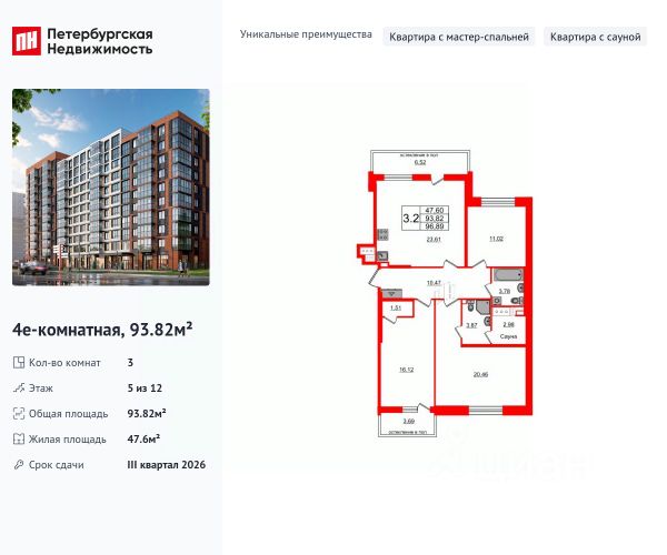 Продается уютная, семейная 3-комнатная квартира от застройщика в жилом комплексе "Титул в Московском" в престижном Московском районе. До метро можно добраться пешком всего за 25 минут. Мастер-спальня с собственной ванной комнатой. Самое приватное пространство в вашей квартире. Уникальная, функциональная европланировка, большая кухня-гостиная 18.38 м², просторная прихожая 12.52 м². Общая площадь квартиры - 80.58 м², жилая 40.34 м², высота потолка 2.77 м. Квартира продается с отделкой "Норд Лайн светлый плюс". Что особенного в ЖК "Титул в Московском"? • Престижный Московский район • Авторская архитектурная концепция • 2 центральные входные группы с ресепшн и лаундж-зонами • Кленовая аллея с арт-стеллой, цветочная аллея и сад трав • Уютные дворы-патио, площадки SetlKids и SetlSport • Инновационный Лицей Setl с оригинальной архитектурной концепцией и уникальной образовательной средой