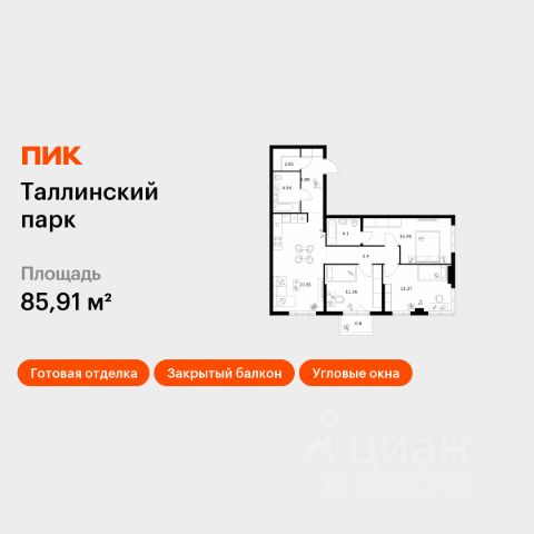 Продаётся 3-комн. квартира площадью 85,1 кв.м на 12 этаже 12 этажного дома (Корпус 4.1, Секция 3) проекта ПИК Таллинский парк. Светлый просторный подъезд на уровне земли, функциональная планировка, большие окна, c отделкой. "Таллинский парк" - проект в Ленинградской области, в районе Новоселье. До станции метро "Проспект Ветеранов" - 15 минут на автомобиле, а до КАД можно доехать всего за 4 минуты. "Таллинский парк" включает 16 жилых домов, детский сад и школу. В проекте появится центральный сквер с обильным озеленением, а через весь квартал протянутся широкие пешеходные бульвары. В зелёных дворах-парках будут оборудованы современные детские и спортивные площадки, обустроены места для отдыха. На первых этажах разместятся магазины, кафе и другие сервисы. Проектом предусмотрены персональные кладовые помещения - это доступный, экономичный и удобный способ хранения сезонных и крупногабаритных вещей. Освободите свою квартиру для полноценной жизни. Район Новоселье активно развивается в городском формате: здесь уже работают детские сады, школа и магазины. Для любителей зимних видов спорта открыта круглосуточная ледовая арена Ice Rink. За покупками и развлечениями также можно быстро доехать: 10 минут - и вы в Аутлете Fashion House Таллинское, гипермаркетах Лента, Леруа Мерлен и Окей. В 10 минутах на автомобиле находится Финский залив, на берегу которого расположились объекты культурного наследия. Рядом - Константиновский парк с отреставрированным дворцом, а чуть дальше расположена усадьба Знаменка. В великолепном Петергофе вы будете уже через 20 минут. Артикул 1026657 (Застройщик ООО "СПЕЦИАЛИЗИРОВАННЫЙ ЗА СТРОЙЩИК "СТРОЙ-ЭКСПЕРТ ") [cn_sbp_1806999]