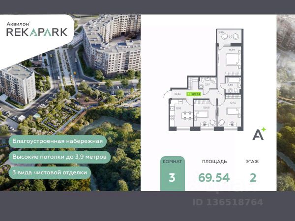 Продаётся 3-комн. квартира площадью 67,84 кв.м на 16 этаже 24 этажного дома (Корпус 5, Секция 2) проекта ПИК Заречный парк. Светлый просторный подъезд на уровне земли, функциональная планировка, большие окна, c отделкой. Жилой квартал "Заречный парк" расположен в районе Новое Девяткино Ленинградской области. В 7 минутах на автомобиле - станция метро "Девяткино", до КАД - 10 минут на машине. В 2026 году будет достроена шестиполосная трасса в обход Мурино, примыкающая к Пискарёвскому проспекту. Она станет дополнительным выездом на КАД для жителей "Заречного парка". Проект включает восемь домов высотой от 15 до 24 этажей, три многоуровневых паркинга, детский сад и школу. В зелёных дворах-парках будут оборудованы современные детские и спортивные площадки, обустроены места для отдыха. На первых этажах разместятся магазины, кафе и другие сервисы. Планировки продуманы так, чтобы каждый квадратный метр жилой площади можно было эффективно использовать. Все квартиры сдаются с готовой отделкой. Артикул 1021970 (Застройщик ООО "СПЕЦИАЛИЗИРОВАННЫЙ ЗАСТРОЙЩИК ИНВЕСТАЛЬЯНС") [cn_sbp_1757010]
