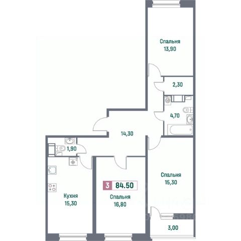 Просторная планировка, идеально подходящая для комфортной жизни: удобная кухня правильной формы, гостиная, две спальни, два санузла.