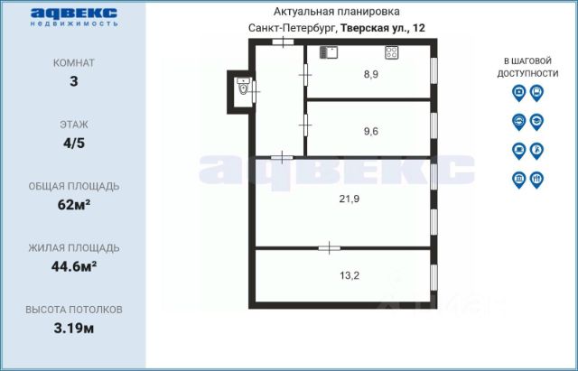 Арт. 128993969 Роскошная 3-х комнатная квартира с современным ремонтом в сердце Петербурга Идеальная локация: - 1 минута до Невского проспекта, но при этом — абсолютная тишина в квартире - Метро "Маяковская", "Площадь Восстания", "Владимирская" — в шаговой доступности - Рядом ТЦ "Стокманн" и "Галерея", музеи, соборы, лучшие рестораны О доме: - Капитально отремонтирован: новые перекрытия, парадная, кровля - Усиленная электрическая линия 15 кВт - Все стояки заменены на современные материалы - Историческое наследие: здесь жили писатель Куприн, артист Александринского театра Ходотов и другие известные личности О квартире: - 3 изолированные спальни + кухня-гостиная 22,5 м² - 2 гардеробные + отдельный хозблок - Элитный ремонт в светлых тонах — стильно, просторно, уютно - Последний этаж — никто не затопит и не будет топать сверху - В парадной всего 4 квартиры, соседи — приятные и аккуратные Премиальная комплектация: - Кухня Egger с техникой Samsung, Gorenje, Hyundai - Ванна из литиевого мрамора (Франция), сантехника OmOikiri, VITRA - Взломостойкая дверь (140 кг!), итальянские замки - Кондиционер Hisense с очисткой воздуха - Керамогранит из Италии и Испании Бонусы: - Узаконенная перепланировка - Видеонаблюдение во дворе и парадной - Закрытая территория + парковочное место для авто Это не просто квартира — это уровень жизни. Готовы переехать в центр Петербурга с комфортом - звоните!