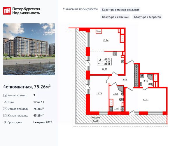 Продается уютная, семейная 3-комнатная квартира от застройщика в жилом комплексе "Pulse Premier" в активно развивающимся Невском районе. До метро можно добраться на транспорте всего за 10 минут. Мастер-спальня с собственной ванной комнатой. Самое приватное пространство в вашей квартире. Сауна в ванной комнате. Расслабьтесь и восстановите силы, как в СПА-салоне. Уникальная, функциональная европланировка, большая кухня-гостиная 17.06 м², вместительная прихожая 10.26 м². Общая площадь квартиры - 78.35 м², жилая 38.02 м², высота потолка 2.75 м. Квартира продается с отделкой "Норд Лайн серый плюс". Что особенного в ЖК "Pulse Premier"? • Премиальные виды на Неву • Отличная транспортная доступность: 2 станции метро и крупные магистрали • Пешеходный променад с ландшафтным дизайном и зонами отдыха • Центр притяжения - городская площадь у набережной с современным благоустройством • Алюминиевые окна в квартирах High Flat (последние этажи)