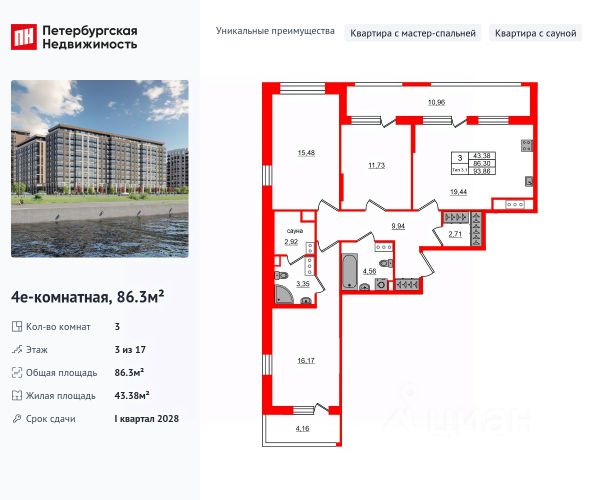 Продается уютная, семейная 3-комнатная квартира от застройщика в жилом комплексе "Пульс Премьер" в активно развивающимся Невском районе. До метро можно добраться на транспорте всего за 10 минут. Мастер-спальня с собственной ванной комнатой. Самое приватное пространство в вашей квартире. Сауна в ванной комнате. Расслабьтесь и восстановите силы, как в СПА-салоне. Уникальная, функциональная европланировка, большая кухня-гостиная 17.04 м², вместительная прихожая 10.17 м². Общая площадь квартиры - 78.24 м², жилая 38.02 м², высота потолка 2.75 м. Квартира продается с отделкой "Норд Лайн светлый плюс". Что особенного в ЖК "Пульс Премьер"? • Премиальные виды на Неву • Отличная транспортная доступность: 2 станции метро и крупные магистрали • Пешеходный променад с ландшафтным дизайном и зонами отдыха • Центр притяжения - городская площадь у набережной с современным благоустройством • Алюминиевые окна в квартирах Хай Флет (High Flat) (последние этажи)