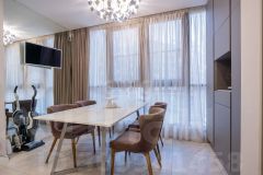 В продаже полностью укомплектованная семейная квартира 4-Евро планировки в Московском районе - одном из самых престижных и респектабельных районов Санкт-Петербурга. Вся мебель в квартире остаётся! О доме: Жилой комплекс бизнес-класса "Московский квартал" расположен в 5 минутах ходьбы от станции метро Электросила, дом 7 этажей. Территория дома полностью закрыта, по периметру - видеонаблюдение. Для маленьких жителей прекрасная детская площадка и детский сад во дворе. Для владельцев автомобилей есть подземный паркинг с возможностью спуститься в него на лифте. Есть помещение для хранения детских колясок. О квартире: В квартире выполнен качественный ремонт по индивидуальному дизайн-проекту: продумана каждая мелочь для комфорта всей семьи, очень грамотно организовано зонирование пространства, в отделке использовались самые качественные материалы премиум-класса, стены окрашены гипоалергенной краской Деруффа. Вся мебель и техника от ведущих европейских производителей (liebherr, Neff, Mielle и др.) остается новым владельцам. Во всей квартире установлены дорогие итальянские стеклянные двери. В ванной есть сауна, в отделке которой использовался канадский кедр, установлена умная печь, о которую нельзя обжечься, фирмы Tylohelo. В квартире сделана вся разводка и вся подготовка под систему "Умный дом", а также, под сигнализацию и видео наблюдение. На окнах установлены автоматические электрокарнизы. Квартира светлая, теплая и просторная, общая площадь: 138, 48 кв.м (по документам 126,9. Выполнена перепланировка). Кухня-столовая - 22 кв.м Гостиная - 13,40 кв.м. Спальня -18,15 кв.м. Детская комната - 24,26 кв.м Детская комната - 20.76 кв.м. Холл 23,19 кв.м Гардеробная - 3,30 Гостевой санузел - 3,27 Ванная - 7,75 Сауна 2,41 О расположении: В 5 минутах от станции метро Электросила, 5 минут выезд на ЗСД. В пешей доступности есть все объекты социальной инфраструктуры: детские сады, школы, поликлиники. Много мест досуга: кафе и рестораны, музеи, рынок и т.д. Код пользователя: 138693 Номер в базе: 3903880