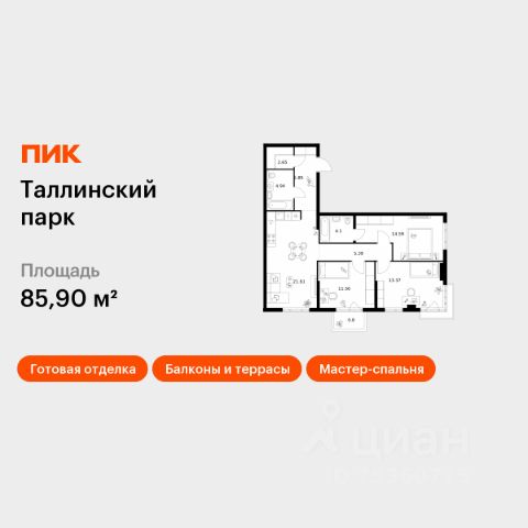 Продаётся 3-комн. квартира площадью 85,9 кв.м на 8 этаже 12 этажного дома (Корпус 4.1, Секция 3) проекта ПИК Таллинский парк. Светлый просторный подъезд на уровне земли, функциональная планировка, большие окна, c отделкой. "Таллинский парк" - проект в Ленинградской области, в районе Новоселье. До станции метро "Проспект Ветеранов" - 15 минут на автомобиле, а до КАД можно доехать всего за 4 минуты. "Таллинский парк" включает 16 жилых домов, детский сад и школу. В проекте появится центральный сквер с обильным озеленением, а через весь квартал протянутся широкие пешеходные бульвары. В зелёных дворах-парках будут оборудованы современные детские и спортивные площадки, обустроены места для отдыха. На первых этажах разместятся магазины, кафе и другие сервисы. Проектом предусмотрены персональные кладовые помещения - это доступный, экономичный и удобный способ хранения сезонных и крупногабаритных вещей. Освободите свою квартиру для полноценной жизни. Район Новоселье активно развивается в городском формате: здесь уже работают детские сады, школа и магазины. Для любителей зимних видов спорта открыта круглосуточная ледовая арена Ice Rink. За покупками и развлечениями также можно быстро доехать: 10 минут - и вы в Аутлете Fashion House Таллинское, гипермаркетах Лента, Леруа Мерлен и Окей. В 10 минутах на автомобиле находится Финский залив, на берегу которого расположились объекты культурного наследия. Рядом - Константиновский парк с отреставрированным дворцом, а чуть дальше расположена усадьба Знаменка. В великолепном Петергофе вы будете уже через 20 минут. Артикул 1026612 (Застройщик ООО "СПЕЦИАЛИЗИРОВАННЫЙ ЗА СТРОЙЩИК "СТРОЙ-ЭКСПЕРТ ") [cn_sbp_1841720] 3-комнатной квартиры с евроремонтом в Ломоносовском районе Ленинградской области.