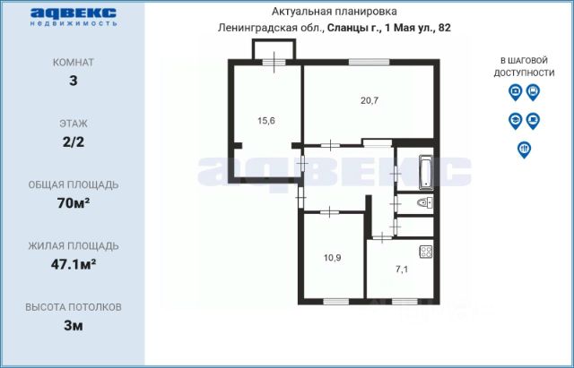 342487 Ленинградская область г. Сланцы ул. Маяковского д. 2 Уникальная возможность приобрести прекрасную 3-комнатную квартиру в городе Сланцы! Представьте себе жилье своей мечты... Идеальное сочетание простора, удобства и экологии вот что мы предлагаем вам сегодня! Вот лишь некоторые причины, почему стоит выбрать нашу квартиру: Просторная трехкомнатная квартира общей площадью 70,2 квадратных метра. Полностью обновленный евроремонт, включающий замену всей электропроводки, выравнивание стен и пола. Здесь созданы идеальные условия для комфортного проживания. Невероятный вид из окон на природу, свежесть воздуха и зелень круглогодично. Это экологический рай для тех, кто мечтает дышать чистым воздухом и гулять вдоль рек и лесов. Вся необходимая инфраструктура под рукой: продуктовые супермаркеты ("Пятёрочка", "Магнит", "Дикси"), образовательные учреждения, медицинские службы, спортивные комплексы и отделения банков. Чистый зелёный район с живописными прогулочными тропинками, парковыми зонами, лесами и водоемами. Недалеко находится Чудское озеро прекрасное место для семейного отдыха. Прекрасные соседи, доброжелательная атмосфера, чистота и порядок во дворе и подъезде. Экологическая чистота местности и близость природных достопримечательностей сделают ваше проживание незабываемым. Транспортная доступность: автобусы и маршрутки отправляются каждые полчаса в сторону Санкт-Петербурга. Безупречные юридические права собственности и отсутствие задолженностей позволяют заключить сделку в кратчайшие сроки. Хотите обрести дом, наполненный светом, пространством и природной красотой? Тогда звоните нам прямо сейчас! Мы будем рады показать вам эту великолепную недвижимость и рассказать обо всех её достоинствах подробнее. Это предложение заставит ваших конкурентов позавидовать! Купить 3-комнатную квартиру с евроремонтом в Сланцах.