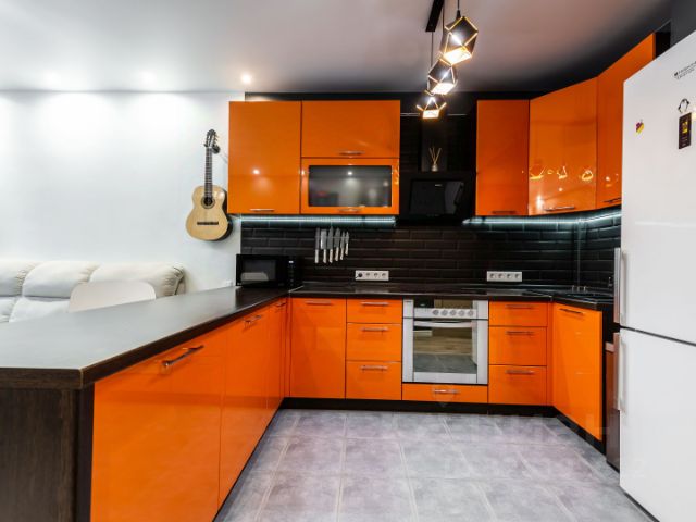 - зона гостиной 15,6 кв.м с мягким точечным освещением поможет взаимодействовать с гостями или домочадцами не отрываясь от процесса приготовления,