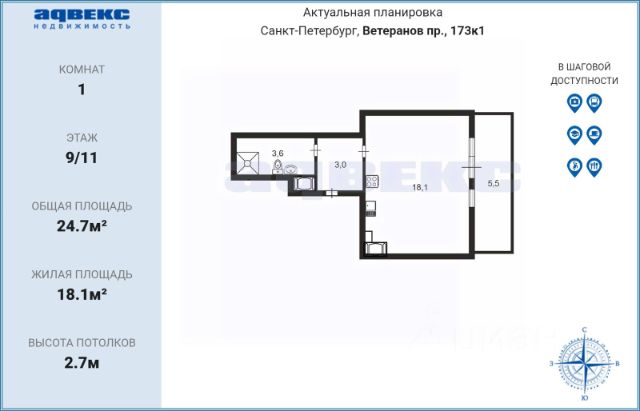 Хорошая транспортная доступность - выезды на КАД и ЗСД. До остановки общественного транспорта 5 минут пешком.