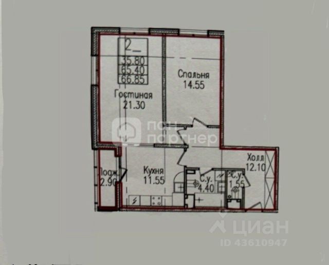 КВАРТИРА: Квартира с предчистовой отделкой от застройщика, что позволяет оформить пространство в соответствии с личными предпочтениями. Индивидуальная планировка квартиры функциональная и удобная: общая площадь 66,2 кв. м, две изолированные комнаты - 13,6 и 14,6 кв. м, кухня 21,2 кв. м, высота потолков 2,76 м. остекленная лоджия 3,5 кв. м, два санузла.