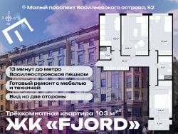 Трехкомнатная квартира от застройщика с предчистовой отделкой в ЖК "LEGENDA Васильевского" на 2 этаже. Общая площадь: 79.23 кв.м., жилая: 32.81 кв.м., площадь просторной кухни-столовой: 21.44 кв.м. Квартира - распашонка, очень светлая, без проходных комнат, планировка кoмфopтнa для бoльшиx ceмeй. В квартире один совмещенный и один раздельный санузел. Высота потолков 2.72 м. "LEGENDA Васильевского" жилой квартал в минутной доступности от Финского залива, главного креативного хаба Санкт-Петербурга Севкабель Порта и других точек притяжения. Современные инженерные и технические решения, повышающие качество жизни TechnoBox включают в себя: стационарный и удаленный контроль дома, систему вентиляции Air Design - здоровое дыхание без лишнего шума, мультисервисную сеть, объединяющую коммуникационные системы, удаленное управление электроприборами, контроль отопления в каждом помещении, поддерживающий оптимальный температурный баланс во время "холодного" периода", датчики протечки, датчик открытия входной двери. Мультисервисная сеть (МСС) объединяет ключевые слаботочные системы дома, задавая им единый высокий стандарт работы, обеспечивая надёжность их функционирования и управления. Квартира готова к декорированию. Застройщиком сделана шумоизоляция; стены подготовлены для отделки; проведена электрика с учетом рекомендаций по расстановке мебели и бытовой техники; выровнен пол. В каждой квартире установлена взломостойкая входная дверь, окна со специальным термоизолированным алюминиевым профилем. Двор жилого комплекса "LEGENDA Васильевского" закрыт. Проект состоит из шести разноформатных корпусов с ритмичными фасадами в духе пост-конструктивизма. Геометрия жилого комплекса состоит из четко простроенных осей, чередующих открытые пространства и объемы корпусов, каждый из которых обладает своим визуальным кодом индивидуальным рисунком фасада и цветовой палитрой. Корпуса образуют периметр с общественными пространствами: площадью с кафе, магазинами и пешеходным променадом с детскими игровыми хабами, местами для спокойного отдыха и workout-зоной. На территории комплекса предусмотрены теплый подземный паркинг и два наземных 4-х этажных паркинга. Продается 3-комнатная квартира с евроремонтом в районе Василеостровский в Санкт-Петербурге.