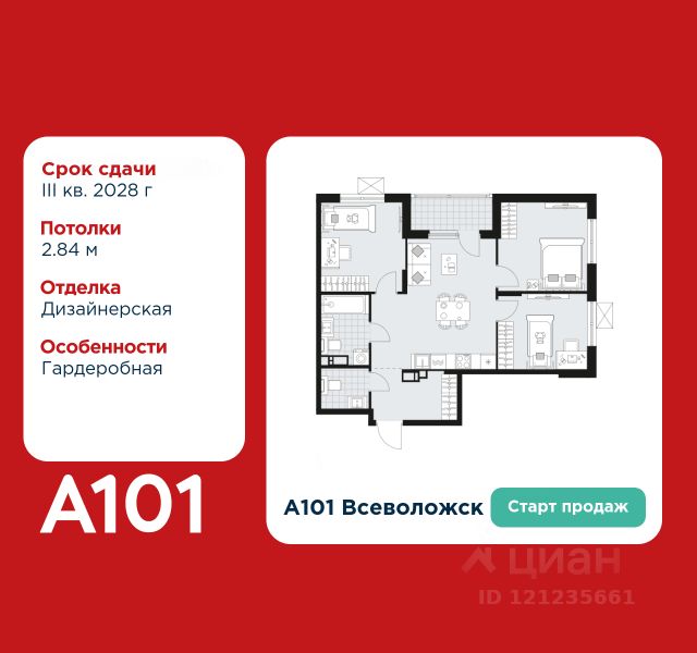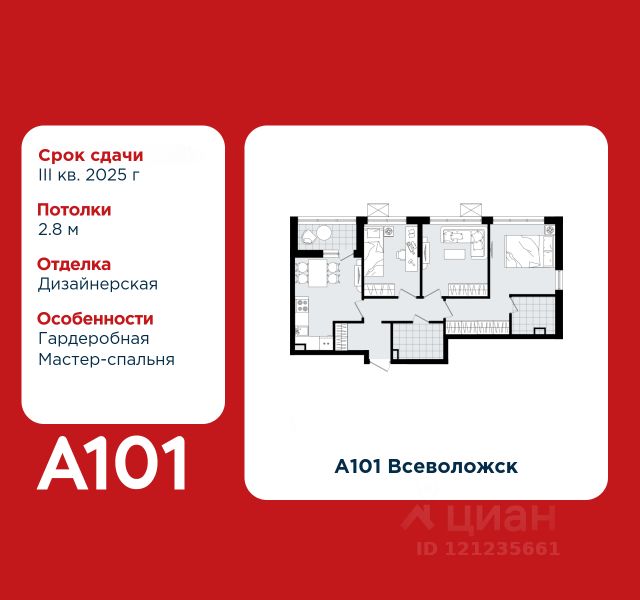 Старт продаж! 3-комнатная квартира площадью 61.90 в ЖК "А101 Всеволожск" на 5 этаже. Квартира с отделкой. Вид из окна на улицу. В квартире 2 санузла. Высота потолков 2.84 м. Предложения от застройщика на февраль 2026: - Гибкая рассрочка 20 000 руб/мес. и первым взносом 10%. ОТДЕЛКА Для квартир с чистовой отделкой предлагается три варианта дизайна: Классика, Карелия светлая и Карелия темная. Варианты всех дизайнерских решений представлены на фотографиях. Подробности можно уточнить у менеджера. На все отделочные работы от застройщика предоставляется гарантия. ПАРАДНАЯ. В каждой парадной предусмотрены места для хранения велосипедов и колясок, гостевой санузел и удобная зона ожидания для гостей. ДВОРЫ И ОКРУЖЕНИЕ. Просторные дворы свободны от машин и закрыты от посторонних. Предусмотрен подземный паркинг с возможностью спуститься из дома на -1 этаж и машиноместа с зарядными станциями для электромобилей. Большую часть комплекса займут благоустроенные зелёные зоны, теневые сады и городские общественные пространства с развитой тротуарной сетью и велодорожками. Каждый дом оборудован системами видеонаблюдения и контроля доступа. Не хватает средств на покупку кладового помещения? Оформите ипотеку на квартиру и добавьте к ней часть стоимости кладовой. ЗАСТРОЙЩИК ГК "А101" - крупный инвестиционно-строительный холдинг, занимает 6-е место по объему строительства в России (по данным "Единого ресурса застройщиков" на 2023 год). НКР присвоило ГК "А101" кредитный рейтинг A+.ru, подтверждая его надежность и финансовую устойчивость для завершения строительства ЖК. Купить 3-комнатную квартиру с ремонтом в Всеволожске.