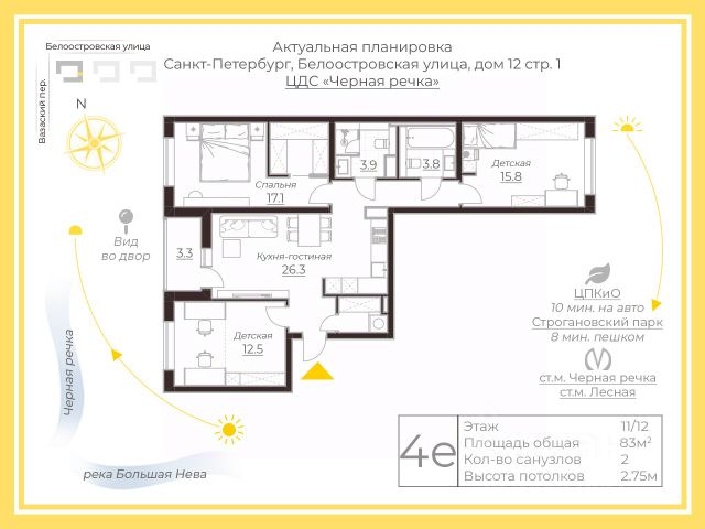 ДОМ: ЖК Чёрная речка построил надёжный застройщик в Санкт-Петербурге - ЦДС. На этаже - 4 квартиры. Закрытый двор, детские площадки. Круглосуточное видеонаблюдение с диспетчерской службой. Подземный паркинг со спуском на лифте, чего нет в соседних ЖК. На первом этаже ЖК открыты магазины, кофейни, булочные, частные детские центры и другое. Wi-Fi на территории двора. Автоматическая передача показаний счетчиков. Планируется открытие детского сада с бассейном и школа на территории ЖК.