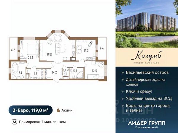Квартира 482 в корпусе Cuprum проекта бизнес-класса "BASHNI ELEMENT" "BASHNI ELEMENT" новый жилой проект бизнес-класса на Васильевском острове от девелоперской компании "ELEMENТ". В его составе 5 башен, две из которых соединены первым в Санкт-Петербурге "небесным мостом" с клубной инфраструктурой. " Первая линия Финского залива (южная часть намыва Васильевского острова), 80% квартир с видом на воду Футуристичная архитектура от "А.Лен" 5 разновысотных башен: CARBON, CUPRUM, TITAN, PLATINA и WOLFRAM (от 18 до 22 этажей) 1026 квартир от студий до 6-комнатных планировок формата "евро", в башнях TITAN и PLATINA 12 видовых пентхаусов Многофункциональный зал для событий, гостиная с кухонной зоной и террасой, коворкинг с "тихими" кабинетами, залы для йоги и персональных тренировок, комната для медитаций, кинозал, библиотека с гостиной и появятся в клубном пространстве "небесного моста" на площади 1000 м2 В стилобатной части проекта "ELEMENT" создаст инфраструктуру, ориентированную в том числе на поколение "альфа" IT-школу с мультимодальным обучением, образовательно-развлекательный кластер, творческие мастерские, а также семейный центр с рестораном и фитнес-клуб с 25-метровым бассейном, тренажерным залом и фитнес-зоной Ландшафтный парк со спортивными зонами, детскими площадками и местами для отдыха площадью 2600 м2 Подземный паркинг с двухуровневым хранением на 552 авто, еще 88 мест на открытой автостоянке ELEMENT создаёт инновационные жилые и коммерческие объекты в Санкт-Петербурге и Москве, которые устанавливают новые стандарты эффективной жизни в мегаполисах. 3-комнатная квартира на бульваре Головнина в Санкт-Петербурге.