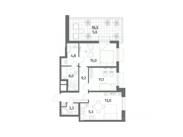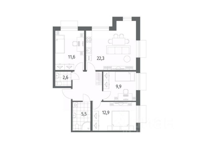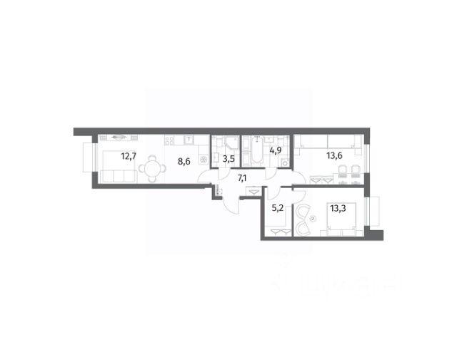 Квартира полностью готова к проживанию, не требует дополнительных вложений.