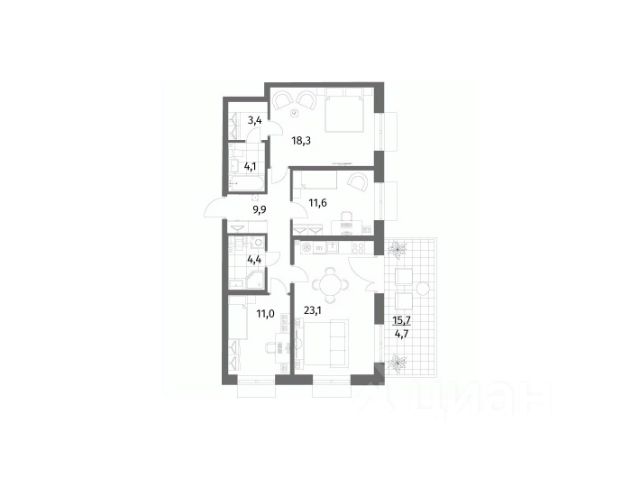 Квартира обладает функциональной и комфортной планировкой. Просторная кухня - гостиная площадью 21 m2 идеально подходит для семейных вечеров и приёма гостей. Вместительный коридор 12,2 m2 , со встроенной системой хранения , два санузла, уютная спальня 15,4 m2 с отдельной гардеробной 4,9 m2 , светлая комната 21,2 m2 , а также кабинет 11,8 m2 с панорамными окнами и выходом на лоджию 6 m2 с безрамочным остеклением Lumon. В квартире выполнен дизайнерский ремонт с использованием дорогостоящих материалов: натурального камня, дерева и премиальной отделки. Установлена сплит - система и КИВы для комфортной рекуперации воздуха а также тёплые полы на кухне и в санузлах.