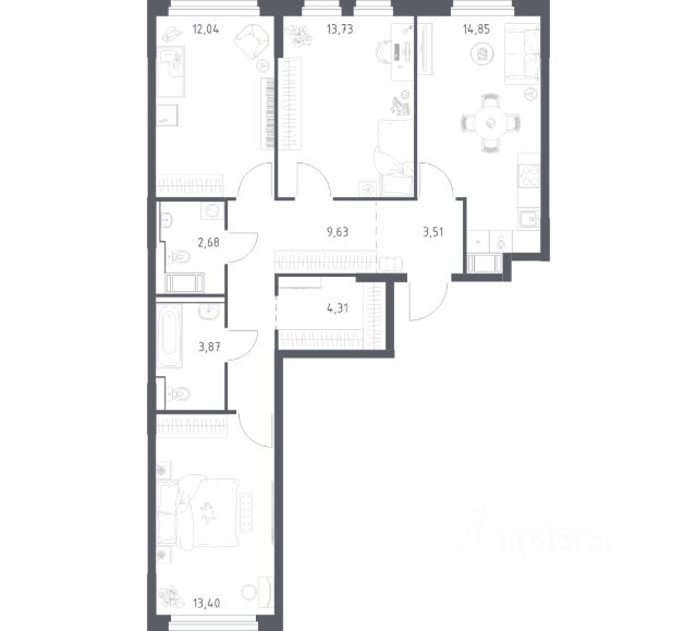 В квартире с готовой отделкой мы поклеили обои под покраску, постелили полы в комнатах и санузлах, выполнили отделку стен. Установили сантехнику и межкомнатные двери, провели электрику. Это лучшее соотношение цены, качества и затраченного времени. Осталось только выбрать место для обеденного стола и удобного дивана.