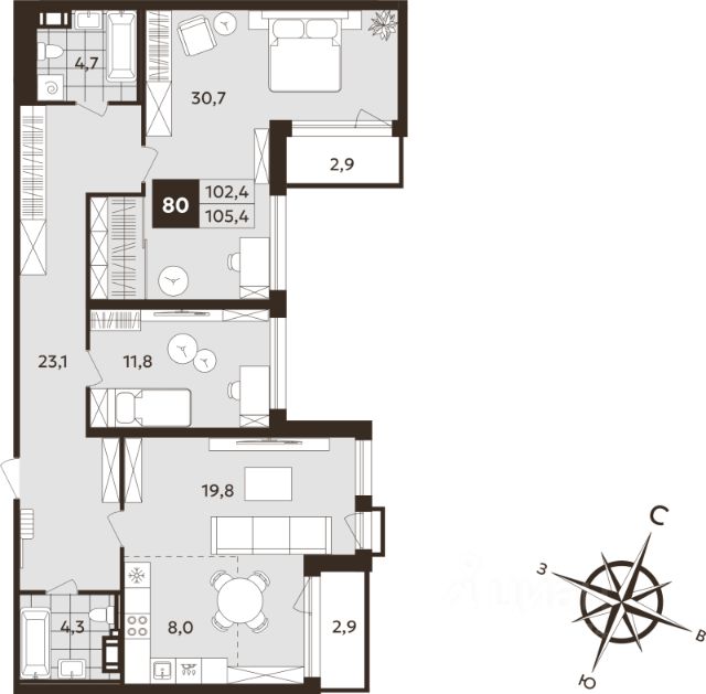 Продаётся 3-комнатная квартира в сданном доме (Корпус 2), срок сдачи: IV-кв. 2025, общей площадью 117.9 кв.м., на 3 этаже. Новый дом построен в историческом центре Петербурга в 3 мин от метро Технологический институт. В нём всего 163 квартиры с просторными планировками (31 до 241 м2). Корпуса высотой 6-9 этажей. На нижних этажах окна квартир выходят в тихие, уютные дворы. С балконов и террас верхних этажей открываются виды на крыши старого города, Исаакиевский и Троице-Измайловский соборы, часовую башню Астрономической обсерватории Главной палаты мер и весов. Доступ на территорию жилого комплекса закрыт для посторонних. Во внутренних дворах разместились игровые площадки для детей разных возрастов, зоны для отдыха и занятий спортом. Входы в парадные находятся со стороны внутренних дворов. На территории и первых этажах ведется видеонаблюдение, организован круглосуточный пост охраны. В центральном лобби размещена консьерж-служба. Под территорией ЖК расположен двухуровневый подземный паркинг на 163 машиноместа. Из паркинга в свою парадную можно подняться на комфортабельном лифте. Также для жителей доступны кладовые помещения на подземных и первом этажах. В сердце Санкт-Петербурга Дом расположен в 1-2 минутах пешком до сада Олимпия и Московского проспекта. В 3 минутах - станция метро Технологический институт. За 9-10 минут от парадной можно дойти до набережной Фонтанки, за 15 минут доехать на авто до Эрмитажа или Мариинского театра. Рядом расположились престижные школы, вузы. В шаговой доступности - питерские рестораны и кафе, фитнес-центры, парки и театры.