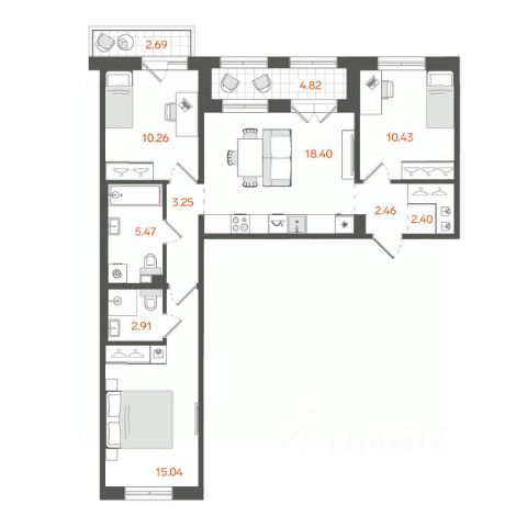 Продаётся 3-комн. квартира площадью 79,1 кв.м на 9 этаже 9 этажного дома (Корпус 2.1, Секция 3) проекта ПИК Лермонтовский 54. Светлый просторный подъезд на уровне земли, функциональная планировка, большие окна, без отделки. "Лермонтовский 54" находится в центре Санкт-Петербурга на набережной Обводного канала, в 5 минутах пешком от метро "Балтийская". Здесь будут квартиры с окнами в пол, высокими потолками и террасами. Жилой квартал находится в центре Санкт-Петербурга, в Адмиралтейском районе, на набережной Обводного канала. В 5 минутах пешком - станция метро "Балтийская". До Невского проспекта на автомобиле ехать 8 минут, до Московского проспекта - всего 2 минуты. Необычные фасады "Лермонтовского 54" напоминают о промышленной архитектуре, которая была популярна в Санкт-Петербурге в конце XIX и начале XX века. Материал отделки - прочный кирпич, который прослужит до 100 лет. А благодаря системе чиллер-фанкойл на фасадах не будет блоков кондиционеров - всё охлаждение происходит внутри здания. В "Лермонтовском" возводятся дома высотой от 7 до 9 этажей с небольшим количеством квартир: на этаже может быть всего две квартиры. Во дворах будут закрытые парки с детскими площадками и местами для отдыха, а на подземном этаже - паркинг с удобной навигацией. Между домами протянется пешеходный бульвар для прогулок и отдыха, для велосипедистов предусмотрены специальные дорожки и парковки. В 2024 году в "Лермонтовском 54" открылся лицей на 1000 мест. Он разместился в здании 1824 года - раньше здесь было Николаевское кавалерийское училище. Во всех квартирах будут трёхметровые потолки и окна в пол. На первых этажах откроются магазины, кафе и другие сервисы. Со стороны набережной в домах, которые признаны объектами культурного наследия, мы разместим общественные пространства. Недалеко от "Лермонтовского 54" находится Юсуповский дворец, парк Екатерингоф, на машине можно доехать до острова Новая Голландия и Мариинского театра. Рядом работают школы, детские сады, торговые центры и гипермаркеты. Артикул 921146 (Застройщик ООО "СПЕЦИАЛИЗИРОВАННЫЙ ЗАСТРОЙЩИК "АЛЬМАНДИН") [cn_sbp_1645348]