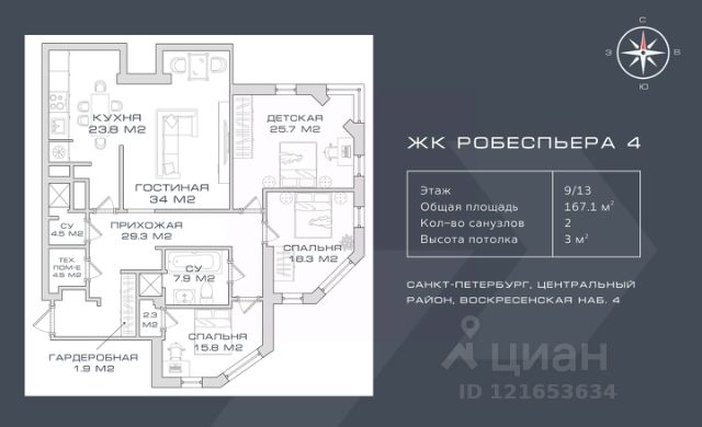 "Приоритет" — это дом, который символизирует успех и статус своих жителей. В продаже представлена квартира площадью 121,9 кв. м с прямым видом на водную гладь Невы, Литейный мост и Петропавловскую крепость. Удобная планировка включает кухню-столовую-гостиную площадью 52 кв. м с большими окнами, откуда открываются панорамные виды на Неву, исторические памятники архитектуры и гранитные набережные. Также предусмотрены две просторные спальни с окнами, выходящими в тихий двор. Конструкция здания с минимальным количеством несущих элементов внутри квартир позволяет жильцам свободно планировать пространство и реализовывать любые дизайнерские решения. Дом сочетает в себе все ключевые преимущества: уникальное расположение в сердце города и престижное окружение, впечатляющие виды из окон на основные символы Петербурга — панораму Петропавловской крепости и акваторию Невы с разводными мостами. Архитектура в стиле неоклассицизма и элегантные интерьеры гармонично сочетаются с современными технологиями и инженерными решениями от ведущих производителей. Эксклюзивность и приватность обеспечиваются ограниченным числом квартир — всего 40, а также полной безопасностью, развитой инфраструктурой и службой персонального сервиса 24/7 на уровне лучших пятизвездочных отелей. Все это создает новый стандарт жизни в центре Северной столицы. Аристократические интерьеры клубного дома соответствуют самым высоким требованиям элитной недвижимости, а в отделке используются только самые дорогие и качественные материалы: натуральный мрамор, дерево, гранит и декоративное стекло. На первом этаже дома разместятся объекты эксклюзивной инфраструктуры, включая роскошное лобби, фитнес-зал, гастрономический бар и премиальный салон красоты. Двухуровневая подземная парковка на 44 машино-места. Дом расположен на исторической Воскресенской набережной в окружении памятников культуры и архитектуры различных эпох. Продается 3-комнатная квартира на набережной Воскресенская в Санкт-Петербурге.