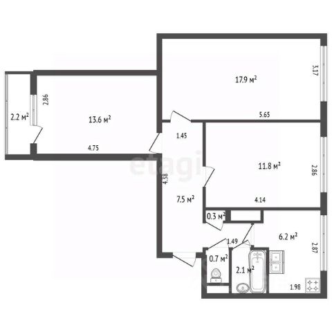 Вас ждет просторная трешка с хорошей планировкой.