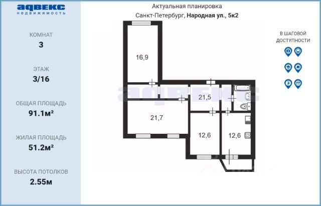 Звоните, отвечу на оставшиеся вопросы, и произведу показ. Купить 3-комнатную квартиру на улице Народная в Санкт-Петербурге.