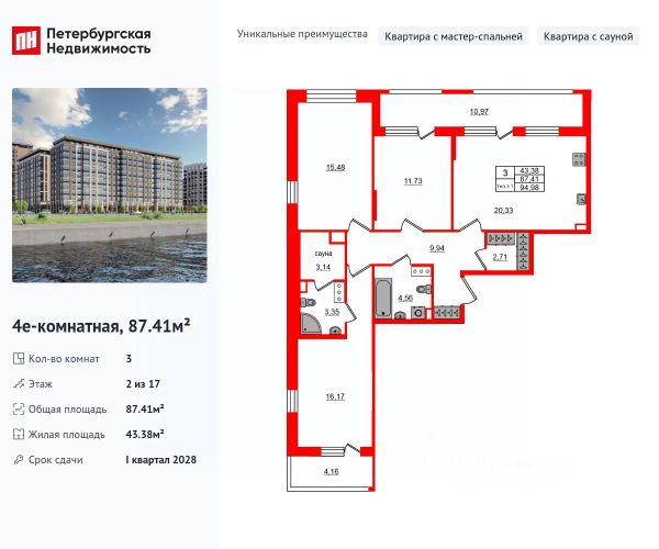 Цена со скидкой до 30% в прямой продаже от застройщика — только в этом месяце. На апартаменты действует беспроцентная рассрочка. Роскошные виды на Неву. 3-к апартамент в комплексе класса бизнес-лайт Зум на Неве на 2-м этаже. Общая площадь 74,3. Без отделки. Зум на Неве расположен в новом месте силы рядом с центром города на первой линии Октябрьской набережной в Невском районе, всего в 7 км от исторической части Санкт-Петербурга. Большой выбор эргономичных и максимально продуманных планировок позволит каждому найти вариант по душе. Панорамные виды на Неву, благоустроенные дворы, детская игровая комната, подземный паркинг, коммерческие зоны на первом этаже, это и многое другое делает Зум на Неве идеальным местом для жизни. Особенности: - Панорамные виды на Неву и город; - 10 мин. до Парка Строителей, 15 мин. до Лондон-молла, Ленты, Максидома, 15 мин. до метро "ул. Дыбенко", 12 мин. до КАД, 10 мин. до центра; - Единая архитектурная концепция. Сдержанные и монументальные фасады в неоклассическом стиле; - Парадный лобби для жильцов. Единый вход в комплекс с администратором, зоной ресепшн и охраной, зоной для бесконтактной доставки посылок и еды; - Подземный отапливаемый паркинг с доступом из парадной; - Доступно 3 варианта отделки на выбор: черновая, предчистовая (White Box) и чистовая; - Зоны отдыха для взрослых и детей, Wi-Fi-покрытие во дворе и в паркинге, зоны для питомцев, арт-объекты и много другое. В шаговой доступности вся необходимая инфраструктура от детских садов и школ до супермаркетов и салонов красоты; - Все происходящее контролируется видеокамерами, а покой внутренней территории и безопасность ваших детей гарантируется полным отсутствием транспорта во дворах в концепции "без машин". Продам 3-комнатную квартиру в округе Невский в Санкт-Петербурге.