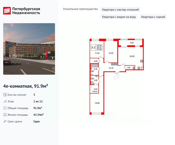 Предлагается к покупке видовая квартира с дизайнерским ремонтом без амортизации в современном стиле. Светлое, эргономичное пространство квартиры позволило организовать кухню-гостиную 38 кв. м с грамотным зонированием, поддерживающем функционально концепцию разных зон: для отдыха, приготовления и обеденную, а также светлый кабинет, просторную спальню с вместительной гардеробной зоной, ванную комнату с окном, гостевой санузел и холл. Панорамные окна всех комнат выходят на западную сторону острова, водную гладь Петровского фарватера Финского залива. Лоджия 25 кв. м с теплым остеклением расширяет границы квартиры и создает дополнительный стилистический эффект. Исключительные видовые характеристики, обилие пространства и естественного света, различные сценарии освещения задают непринужденный характер интерьера. Деликатные акценты с морской тематикой в согласии с видами на водную гладь, природная цветовая палитра, современные технические и инженерные решения, практичность систем хранения, система кондиционирования для создания оптимального климата обеспечивают необходимый уровень индивидуального комфорта. Квартал "Морского Фасада" состоит из шести корпусов оригинальной архитектуры с благоустроенными дворами и пешеходными зонами. Повседневный комфорт жителей обеспечивают системы кондиционирования и вентиляции, лифты фирмы OTIS, спутниковое телевидение, служба консьержей, охрана и круглосуточное видеонаблюдение, гостевая и подземная парковка. Продам 3-комнатную квартиру в округе Остров Декабристов в Санкт-Петербурге.