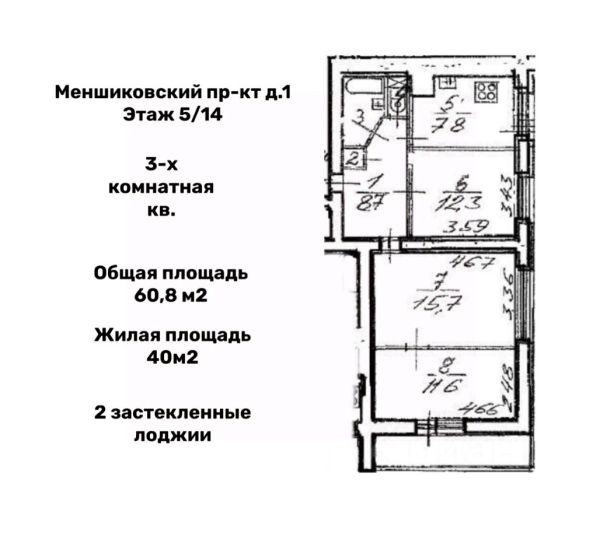 Продается 3-комн. квартира с предчистовой отделкой в ЖК "RESPECT" на 12 этаже. Общая площадь: 79.72 кв.м., жилая: 44.24 кв.м., площадь просторной кухни-столовой: 16.03 кв.м. Угловая квартира, очень светлая, естественная вентиляция при открытии окон. В квартире один балкон и две лоджии, один совмещенный и один раздельный санузел. Высота потолков 2.7 м. Квартира будет сдана с отделкой WHITE BOX, в которую включены следующие виды работ: - заливка стяжки; - установлена система отопления квартиры; - подготовлены потолки; - все стены выровнены, загрунтованы и отштукатурены; - электрическая проводка разведена по комнатам. Квартира будет готова к чистовой отделке. Квартира находится в корпусе 6. Дом монолитный, одноподъездный, высотой 13 этажей. На этаже 8 квартир. В подъезде 1 пассажирский и 1 грузовой лифт. Окончание строительства - 4 квартал 2026 года. Оформление сделки по договору долевого участия. В шаговой доступности от жилого комплекса находятся станции метро (расстояние по прямой): "Лесная" (800 м), "Площадь Мужества" (1.4 км), "Выборгская" (1.9 км), также недалеко от этого корпуса находятся станции метро: "Академическая", "Политехническая". Квартал строится на Полюстровском пр, 87, в одной из самых востребованных локаций Петербурга. В 10 минутах пешком - метро "Лесная" и в 10 минутах на транспорте - Петроградская сторона. Высота домов от 7 до 13 этажей. На территории Respect строится школа на 1125 учащихся и детский сад на 240 мест. Запроектированы собственная газовая котельная, закрытая территория, дворы без машин и подземные паркинги с лифтами. Вентилируемые фасады облицованы клинкерным кирпичом. Дома из этого материала служат веками, являясь гордостью хозяев. Дизайн парадных зон и входных групп - сочетание лаконичности отделки и декоративных элементов с текстурами из натурального камня и дерева с приглушенной подсветкой теплым светом. Во входных группах расположены гостевые зоны с мягкой мебелью. Вся территория квартала будет связана единой концепцией благоустройства, разработанной ландшафтным бюро L.BURO. В основе - идея создания увлекательного ландшафтного пространства для насыщенной жизни, включающего в себя пейзажные зоны, современные архитектурные композиции, открытые террасы на стилобатах с зонами отдыха и парклетами, спортивными площадками. Это пространство для людей всех возрастов и различных увлечений. На эксплуатируемой кровле на уровне первого этажа в домах 1 и 4 будут обустроены общественные видовые террасы. В квартале запроектированы внутренние закрытые территории дворов домов без доступа автомобилей и безбарьерная среда для велосипедистов и колясок. Предусмотрены IP-домофония с функцией дистанционного открывания калиток и парадных, а также дистанционный сбор показаний счетчиков и мобильное приложение для жителей. Для безопасности жителей квартала - круглосуточное видеонаблюдение и служба охраны. В каждой квартире предусмотрены внешние корзины для кондиционеров. #ZSg9CZ Продается 3-комнатная квартира в округе Пискарёвка в Санкт-Петербурге.
