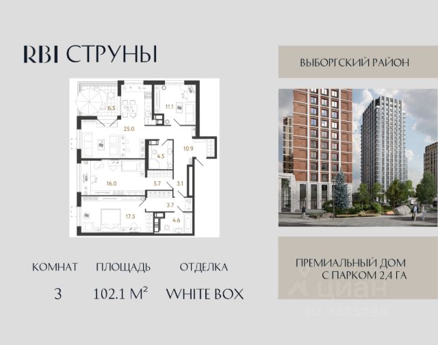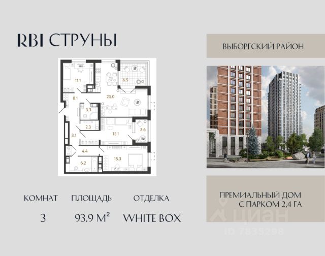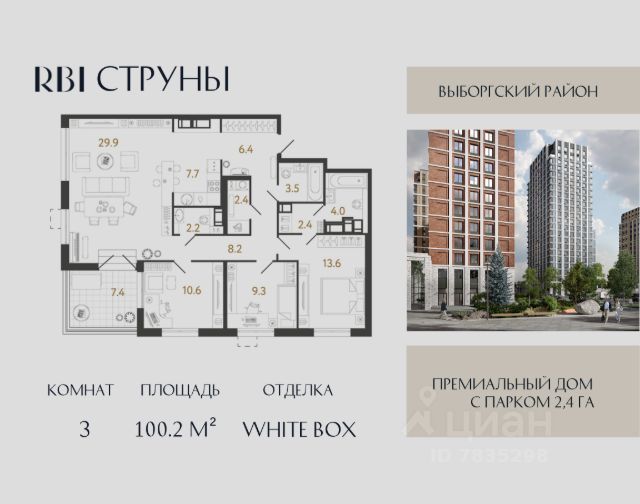 Продаётся 3-комнатная квартира в строящемся доме по адресу ул. Береговая, дом 12, ЖК "Loft у Озера". ЖК расположен в Выборгском районе Санкт-Петербурга, МО Шувалово-Озерки, в 300-х метрах от Большого Суздальского озера. До метро Проспект Просвещения и метро Озерки 8 минут на машине. ДОМ СДАН Проектное финансирование строительства осуществляет ПАО "СБЕРБАНК". Застройщик ООО "СЗ "ИНТЕСКОМ". Жилой комплекс "Loft у Озера" аккредитован в 13- банках Квартира общей площадью 93,75 м2 расположена на 2-м этаже. 4Е планировка. Отделка черновая. Высота потолков 2,85 м. Кухня-гостиная 21,50 м2. Квартира трехсторонняя. Два санузла. Два балкона-веранды с панорамным остеклением. Площадь первого балкона-веранды - 6,93 м2, ширина 1,45 м. Площадь второго - 8,95 м2, ширина 1,48 м. ЖК "Loft у Озера" это уникальный клубный проект бизнес-класса с авторской архитектурой в стиле LOFT, расположенный в самой живописной и элитной части Выборгского района Петербурга. Состоит из двух домов: Дом 8 на 16 квартир и Дом 12 на 59 квартир. 5 ПРИЧИН ВЫБРАТЬ ЖК Loft у Озера: 1. СТИЛЬНАЯ АРХИТЕКТУРА проекта в стиле Loft 2. УЕДИНЕННАЯ АТМОСФЕРА клубного дома 3. ЗЕЛЕНАЯ ЛОКАЦИЯ В МЕГАПОЛИСЕ 4. СМАРТ ПРОСТРАНСТВО внутреннего двора 5. СОВРЕМЕННЫЕ РЕШЕНИЯ ЖК бизнес-класса ОСОБЕННОСТИ ЖК "Loft у Озера": БЛАГОУСТРОЙСТВО: закрытая охраняемая территория двора с ландшафтным дизайном, открытыми парковками. Спортивная площадка с теннисным столом, чилл зона с шезлонгами, территория для отдыха взрослых, место для работы и общения, детская площадка, велопарковки. ПОДЗЕМНЫЙ ПАРКИНГ на 31 машиноместо располагается в доме 12. Машиноместа продаются как отдельные объекты недвижимости. Вход в паркинг отдельный. Лифт в подземный паркинг не предусмотрен. КЛАДОВЫЕ ПОМЕЩЕНИЯ площадью от 2,4 до 10,2 м2 расположены в доме 12. ПАТИО. Все квартиры на 1-х этажах имеют выход на площадку для отдыха возле дома, огороженную живой изгородью. БАЛКОНЫ - ВЕРАНДЫ во всех квартирах. Площадь от 7,5 до 9,5 м2. Глубина от 1.4 до 2 м. ПАНОРАМНОЕ ОСЕКЛЕНИЕ балконов. Увеличенные окна. Классические и ЕВРО ПЛАНИРОВКИ. Кухни от 11 до 23 м2. 46 см толщина наружных стен. УСИЛЕННАЯ ЗВУКОИЗОЛЯЦИЯ в межэтажных перекрытиях. БЕЗБАРЬЕРНАЯ СРЕДА: Все лифты грузовые. Входы в подъезды и входы в лифты располагаются на уровне земли. Не нужно подниматься по ступеням, чтобы попасть в дом или в лифт. ТЕХНОЛОГИЧНЫЕ РЕШЕНИЯ: зарядное устройство для электронных приборов во дворе, зарядная станция для электромобилей, Wi-Fi покрытие дворовой территории, оптоволокно до дверей каждой квартиры, умный доступ во двор и в дом. Продам 3-комнатную квартиру в округе Шувалово-Озерки в Санкт-Петербурге.