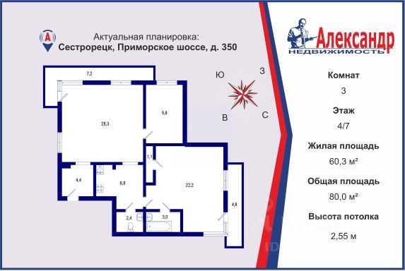 Если у вас есть дополнительные вопросы - напишите или позвоните и мы предоставим вам всю необходимую информацию. Продам 3-комнатную квартиру на улице Борисова в городе Сестрорецк в Санкт-Петербурге.