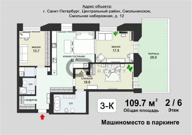 Арт. 115975934 Элитная квартира 110 м² с авторским ремонтом, террасой 29 м² и машиноместом в ЖК "Смольный парк" Описание: Дорогие ценители утонченной жизни в центре Петербурга! Вашему вниманию — исключительное предложение в престижном ЖК "Смольный парк". Это не просто квартира, а готовая история вашего комфорта, воплощенная в индивидуальном дизайн-проекте с использованием эксклюзивных материалов и техники мировых брендов. Ключевые преимущества: Уникальная планировка: Пространство 109,7 м² с тремя спальнями и узаконенной перепланировкой. Гостиную-кухню можно трансформировать под ваши задачи увеличивая или уменьшая ее площадь. Повсюду продуманные системы хранения. Ваша личная терраса 29 м²: На втором этаже вас ждет просторная терраса с видом на зеленый двор и набережную. Ее можно остеклить, установить камин, разбить зимний сад — идеальное место для отдыха с семьей в любое время года. Эксклюзивная отделка и материалы: Спальная зона: Гарнитур от ведущего итальянского бренда Poliform — эталон стиля, качества и функциональности. Ванные комнаты: Сантехника легендарной британской марки Victoria&Albert из натурального камня. Кухня: Поверхности из цельного массива натурального камня и техника Neff. Детали: Натуральный камень на подоконниках,красивые радиаторы отечественного премиум-бренда "Сегежа", полы из массива дерева. Технологии комфорта: В квартире реализован подогрев полов, установлена станция глубокой очистки воды в комплексе. Вся техника премиум-класса: Miele (прачечная), винный шкаф Liebherr и кофемашина. Множество световых сценариев для создания идеальной атмосферы в квартире. Готовое решение для жизни: Вас ждет законченный дизайнерский ремонт. Можно заезжать и наслаждаться жизнью высшего класса. Собственное машиноместо: К квартире опционально предлагается удобное машиноместо — машиноместо в охраняемом подземном паркинге. Прямо из лифта вы можете спуститься на уровень парковки, что невероятно удобно в любую погоду. О комплексе: ЖК "Смольный парк" — это эталон спокойной и безопасной жизни в сердце города. Охраняемая территория утопает в зелени вековых деревьев, здесь есть детские площадки, зоны для отдыха с качелями и скамейками. Вашу безопасность обеспечивает круглосуточная охрана, консьерж и подземный паркинг с системой контроля доступа. Локация: Центральный район, тихий и зеленый уголок в шаговой доступности от Таврического сада. Отличная транспортная доступность: вы быстро доберетесь до "Золотого треугольника" на автомобиле по набережным и Суворовскому проспекту. Эта квартира создана для тех, кто ищет не просто метры, а готовый образ жизни высшего класса с полным пакетом удобств. Все продумано до мелочей — от парковки до дизайнерских светильников. Вам осталось только позвонить и назначить просмотр! 3-комнатная квартира на набережной Смольная в Санкт-Петербурге.