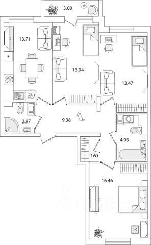 Квартира с ДЕЙСТВИТЕЛЬНО КОМФОРТНОЙ планировкой: