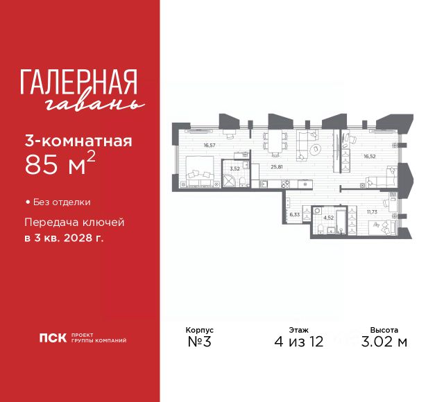 Трехкомнатная квартира в ЖК "Галерная гавань" на 7 этаже. Квартира без отделки, новый собственник может сделать ремонт по индивидуальному дизайн-проекту. Общая площадь: 96.22 кв.м., жилая: 49.24 кв.м., площадь просторной кухни-столовой: 22.19 кв.м. Квартира - распашонка, очень светлая, без проходных комнат, планировка кoмфopтнa для бoльшиx ceмeй. В квартире два совмещенных и один раздельный санузел. Высота потолков 3.02 м. Дом монолитный, трехподъездный, высотой 12 этажей. Квартира находится во 2-й секции в корпусе 1. На этаже 5 квартир. В подъезде 1 пассажирский и 1 грузовой лифт. Начало строительства - 4 квартал 2025 года. Окончание строительства - 3 квартал 2028 года. Оформление сделки по договору долевого участия. В шаговой доступности от дома находится станция метро (расстояние по прямой) "Приморская" (1.6 км), также недалеко от этого корпуса находятся станции метро: "Горный институт", "Василеостровская", "Спортивная", "Крестовский остров". "Галерная гавань" — это жилой комплекс бизнес-класса в исторической части Васильевского острова — на берегу Галерной гавани, ведущей свою историю с 1724 года. В свою очередь, исторический Васильевский остров это университеты, школы, детские сады, поликлиники, несколько станций метро и прочая инфраструктура без проблем с транспортной доступностью. В "Галерной гавани" шесть корпусов на 813 квартир, площадью от 29,5 до 134 кв.м. Высота потолков 3 м. Два корпуса из шести всего на 20 квартир. На верхних этажах расположатся квартиры с большими террасами и панорамным остеклением. Также есть квартиры с французскими балконами и мастер-спальнями. Четыре квартиры из каждых пяти с видами из окон на тихую воду, на старые и новые городские символы. Паркинг займет весь подземный объем квартала, и будет вмещать 606 автомобилей. Фасады "Галерной гавани" выполняются в стиле баварской кирпичной кладки, с акцентами из керамогранита графитового оттенка. Объемы задаются ризалитами с художественной подсветкой. Для жителей будет создан комьюнити-клуб с переговорной и библиотекой, кинозалом, кофе-поинтом, детской комнатой с пространством для мастер-классов, фитнес-зоной, а также бьюти-кабинетом. "Галерная гавань" — это также первый в Петербурге жилой комплекс с общественным пространством у воды. ГК "ПСК" восстановит десять исторических зданий, в которых расположатся рестораны, кафе, фитнес-клуб с бассейном, культурное пространство, театр и офисы. При этом набережная будет превращена в пешеходную, в территорию общественного пространства. #Z6bazB