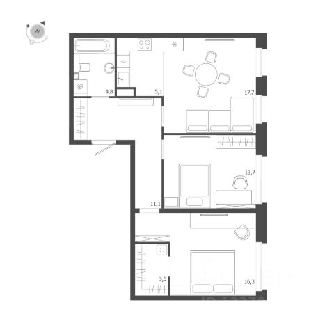 Продается квартира 433, по адресу г. Санкт-Петербург, улица Профессора Попова, дом 47, литера А, корпус Корпус 7 в ЛДМ на 3 этаже, с площадью 116.5 м2.