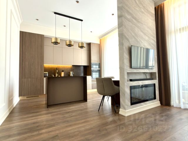 Вся мебель остается в квартире. На двух уровнях рапсоложены три спальни (в том числе смарт-формата), три санузла, кухня-гостиная, множество систем хранения, постирочная