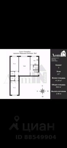Комнаты: две изолированные и одна смежная (18.5 / 17.2 / 13.8 м²)