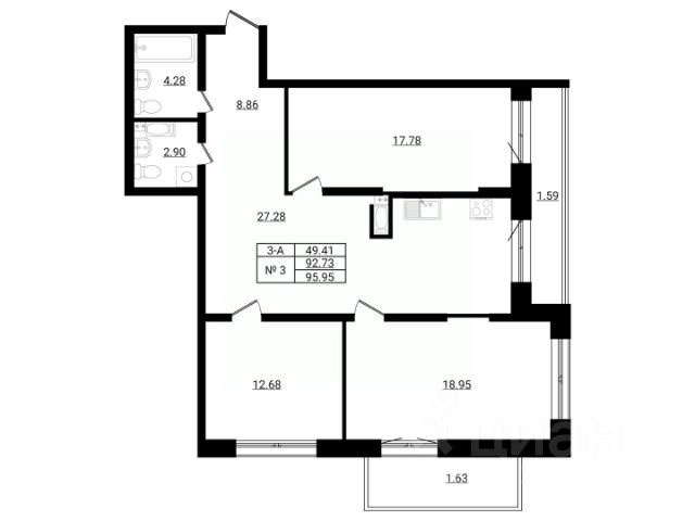 15.9 кв. м. с видом на парк 300-летия Санкт-Петербурга.