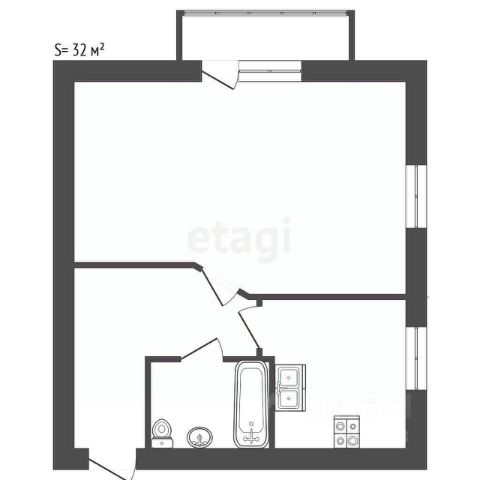 Планировка без лишних выступов и углов: в коридоре — место под полноценный шкаф, кухонная зона удобно расположена, остаётся много свободного пространства.
