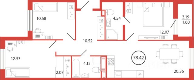 • удобная для семьи с детьми планировка в квартире три комнаты, коридор с нишей под вместительный шкаф, просторный совмещенный санузел и две застеклённые лоджии;